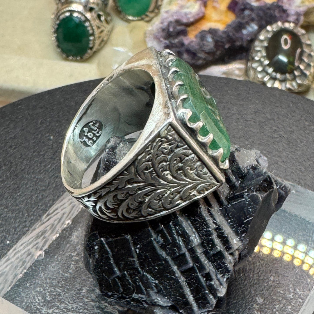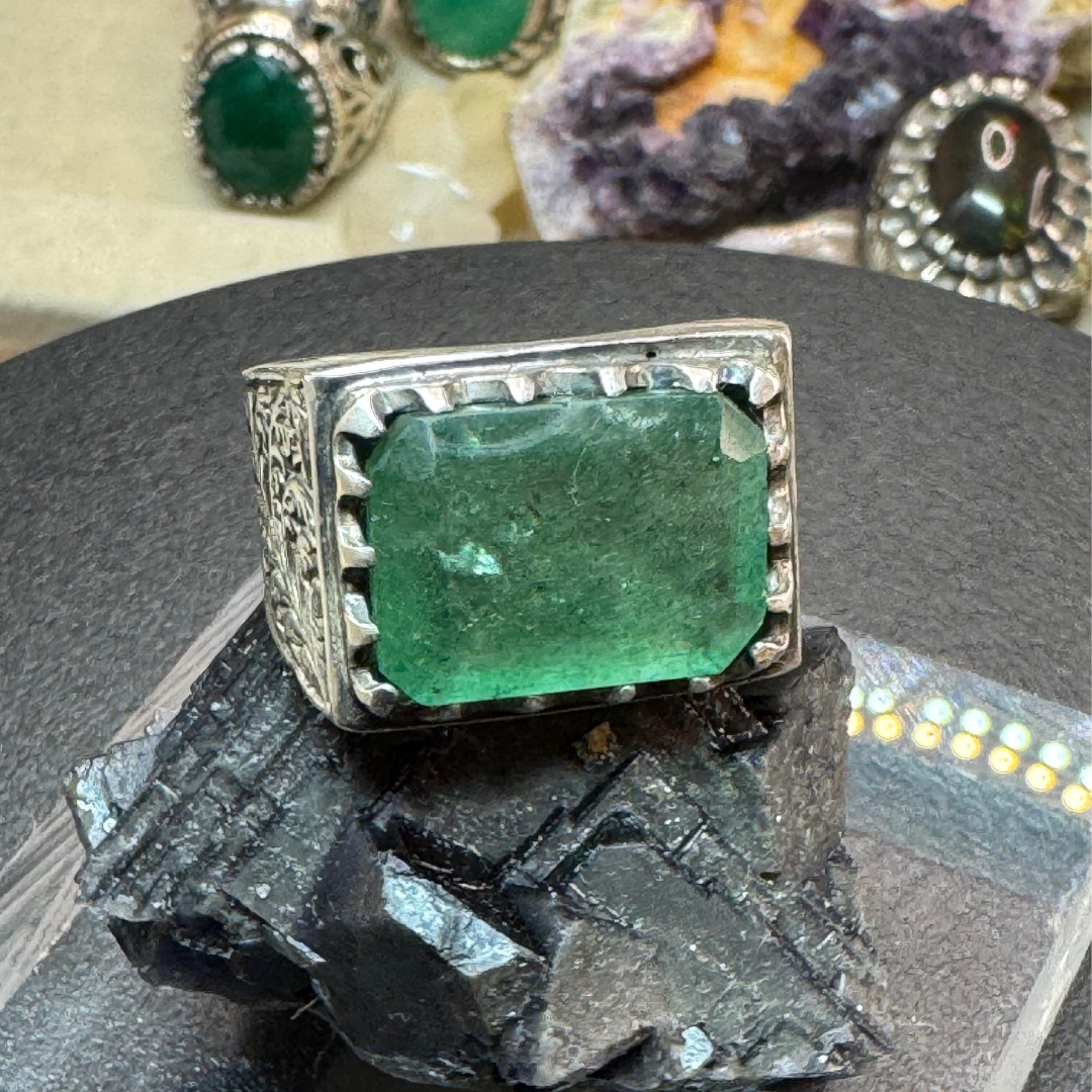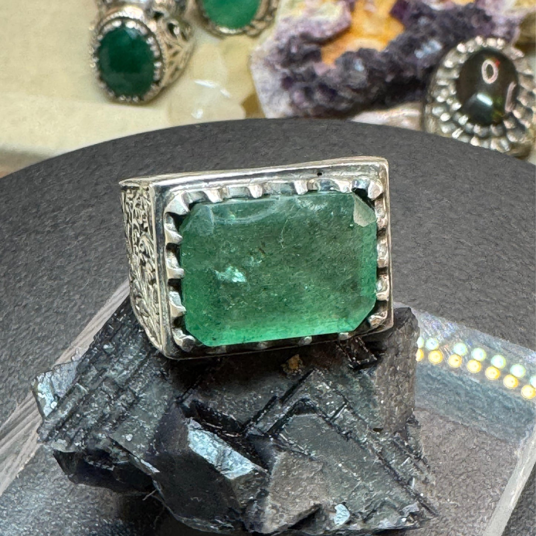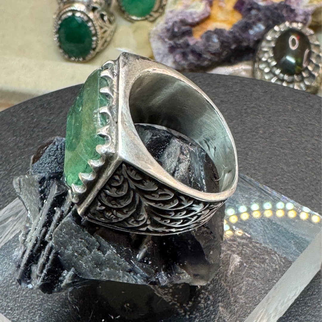 925 Sterling Silver ring handmade green African emerald  size 10