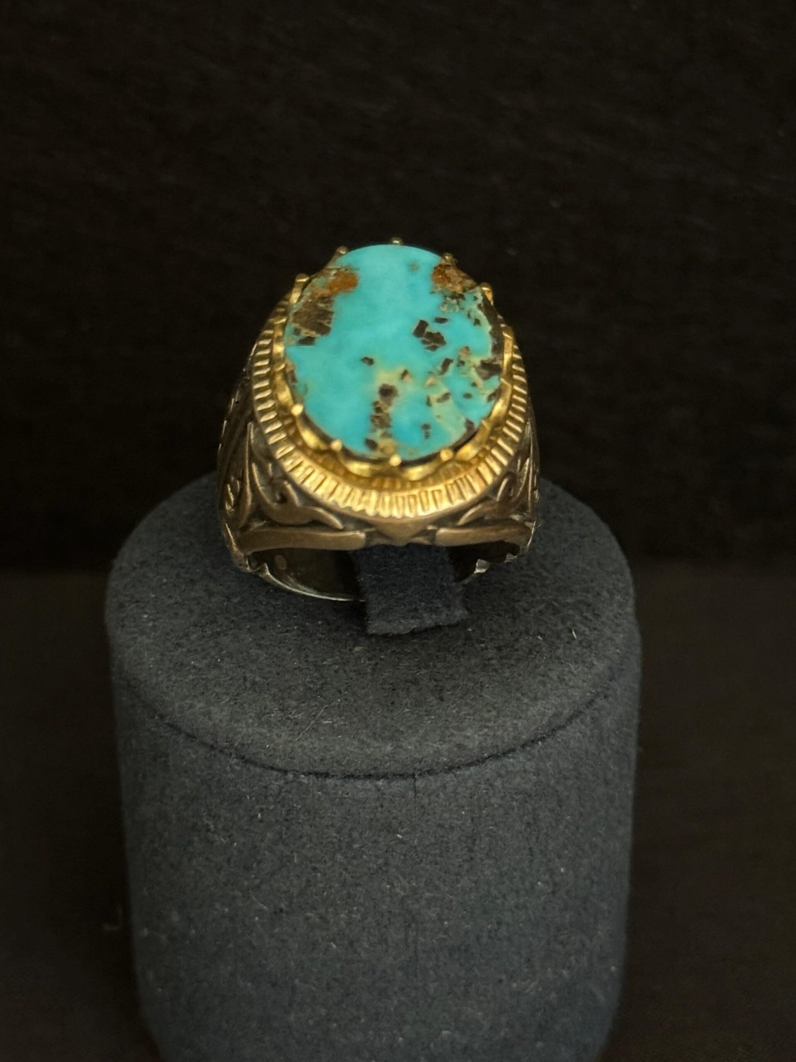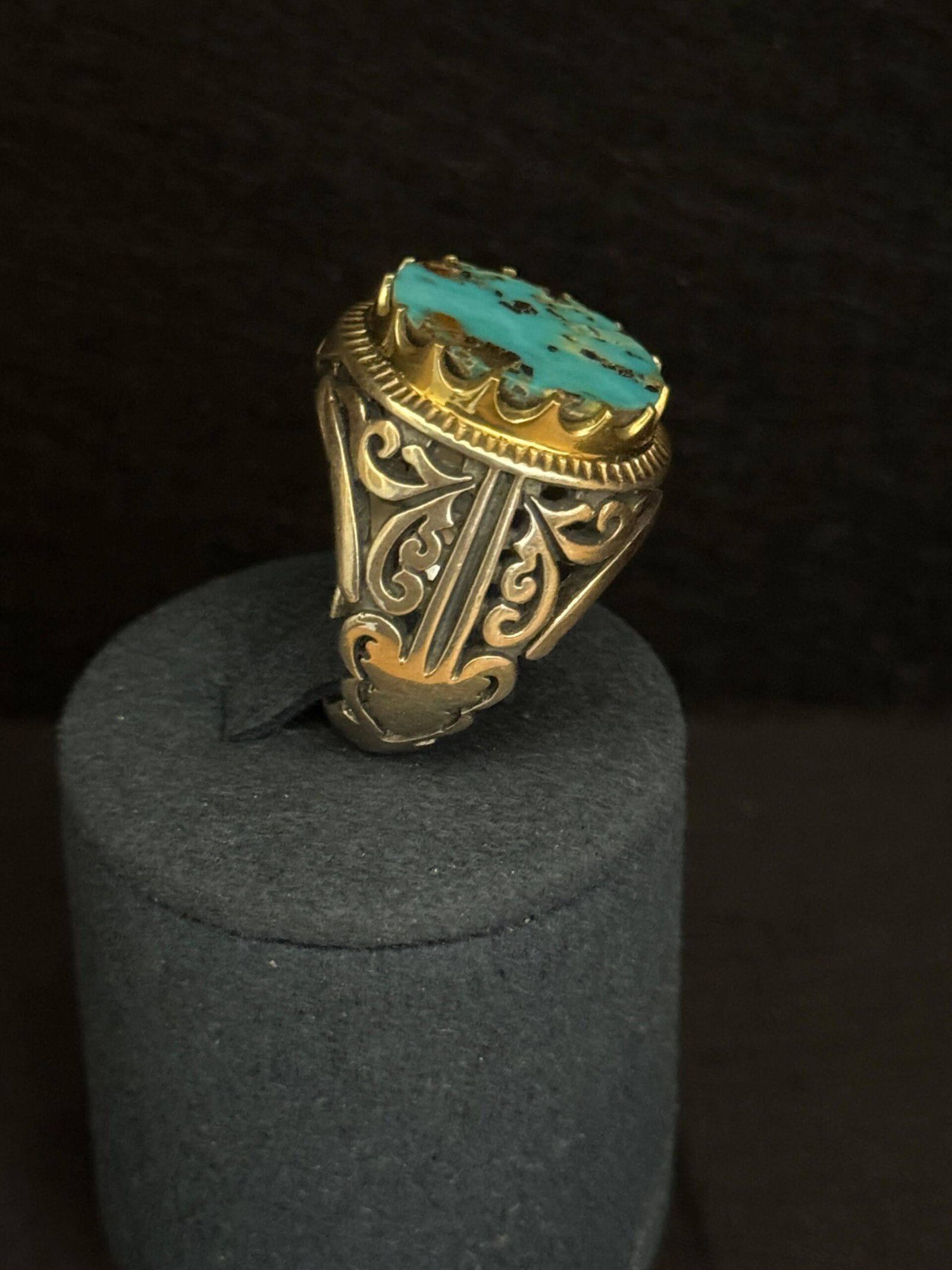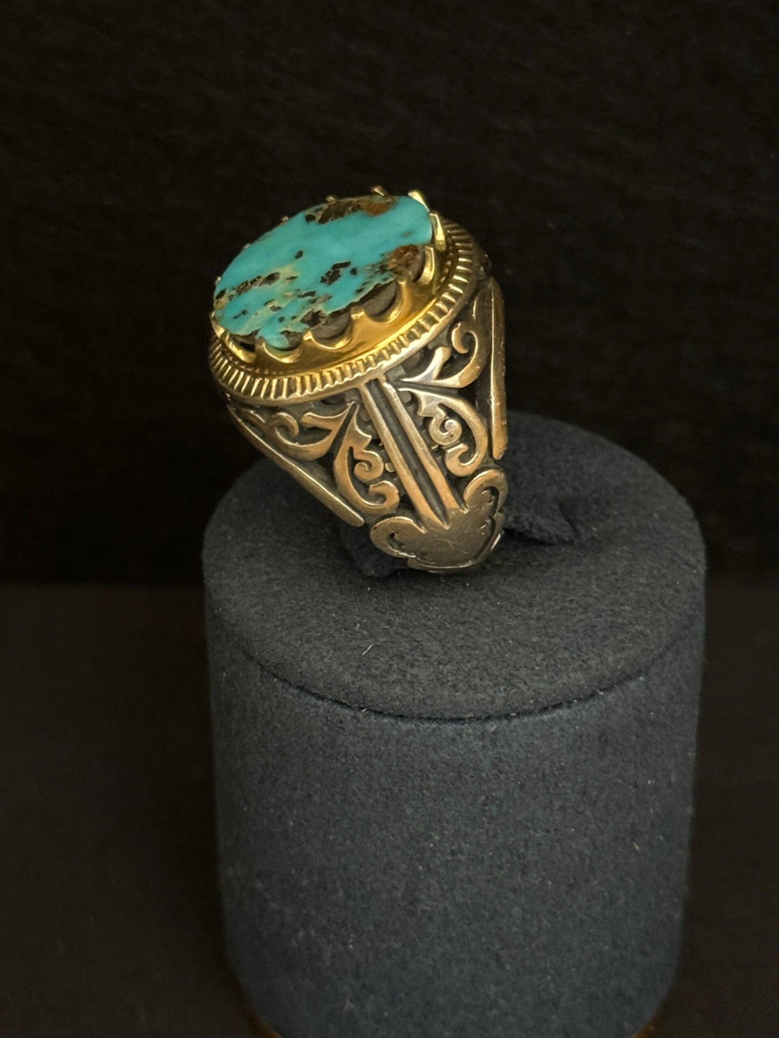 froze Nishapur for men handmade sterling silver and natural froze Irani stone size 10