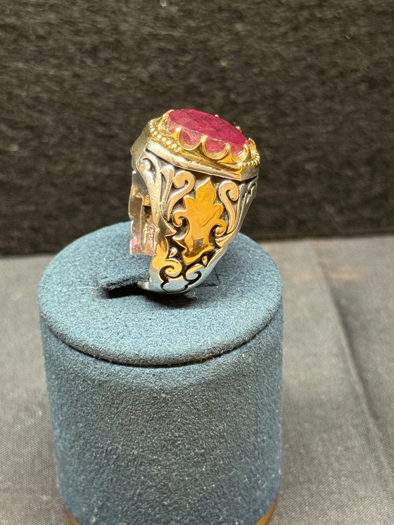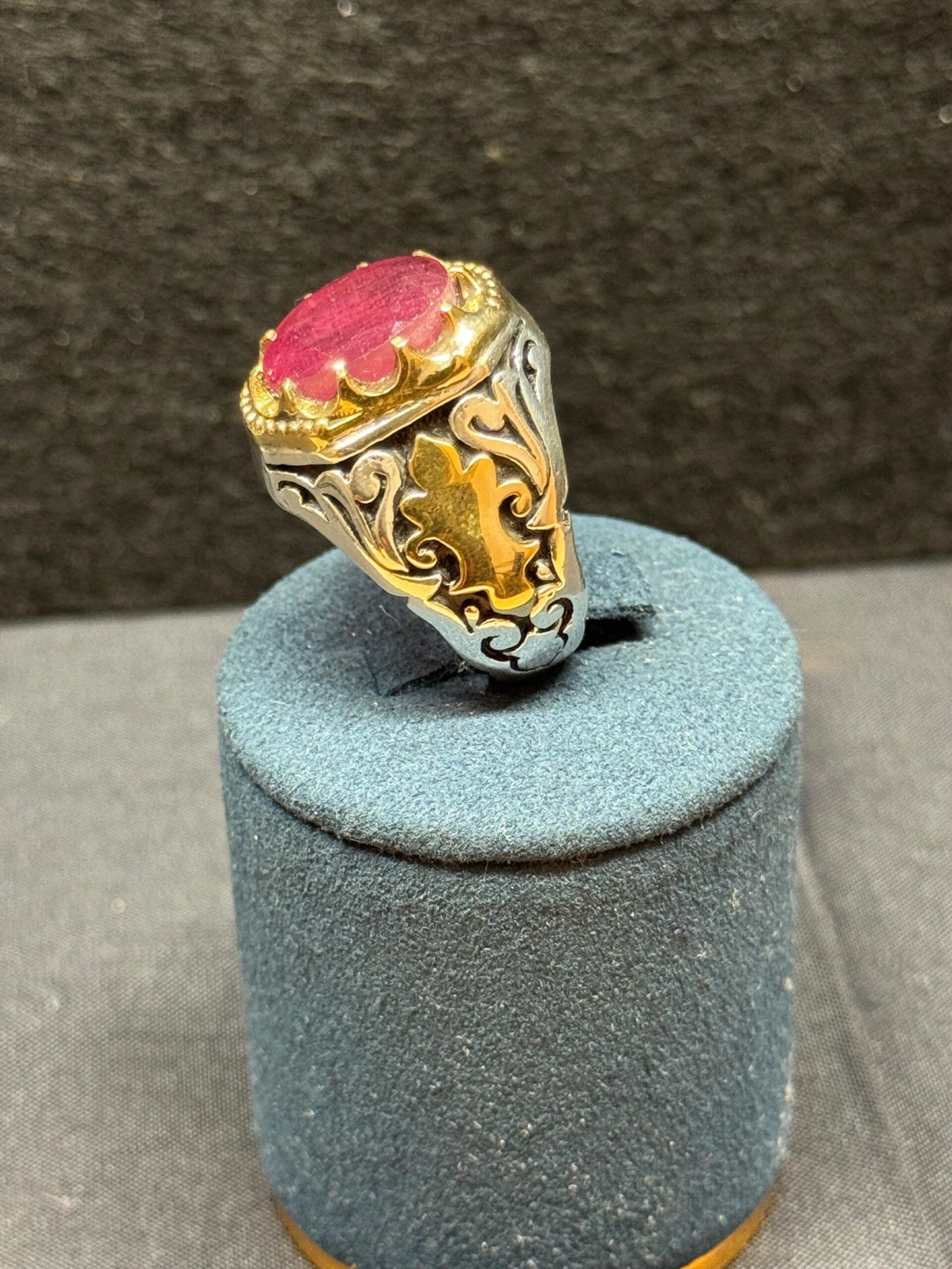 African ruby natural ,handmade sterling silver 925 size 10.5 for men