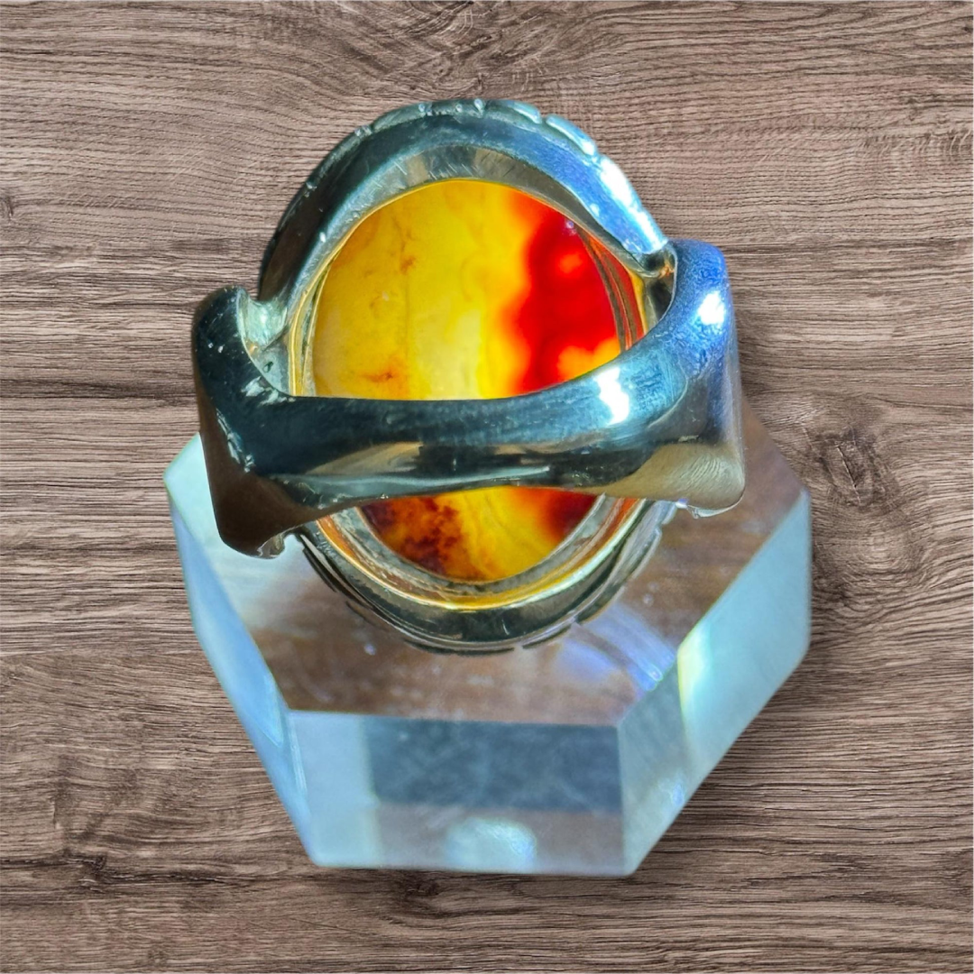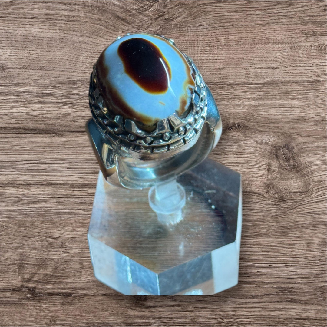 sterling silver ring 950 for men size 9 handmade natural aqiq  Yamani agate weight (25.93 g)